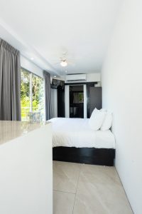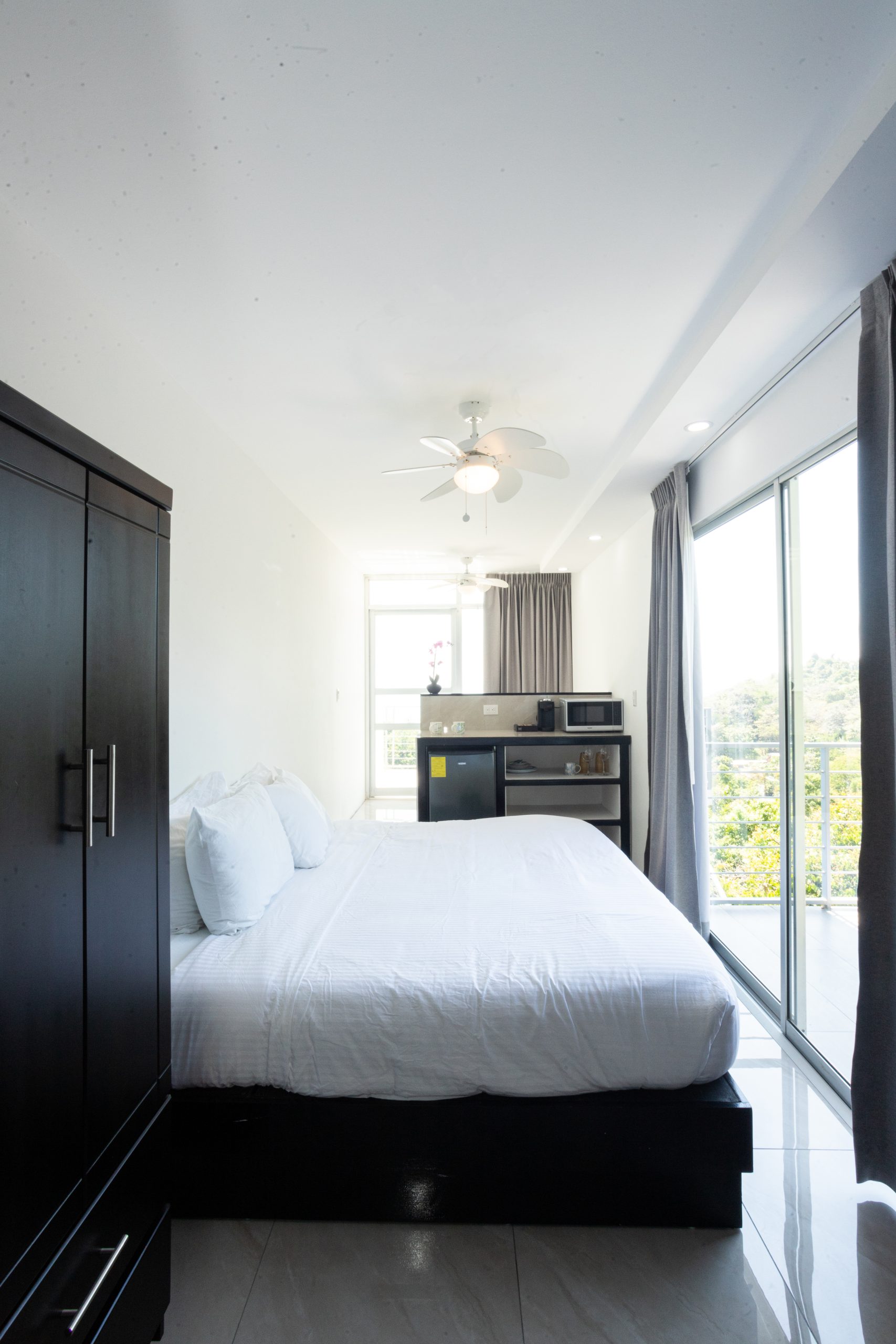 Las habitaciones Studio, también situadas en el último piso del hotel, son perfectas para unas vacaciones románticas. Es más pequeña que la habitación Penthouse Suite pero es privada y acogedora. Tendrá todas las amenidades de un hotel y acceso al área privada y espaciosa en la terraza del piso superior donde podrá relajarse, disfrutar de la brisa del mar y disfrutar de las mejores vistas del Océano Pacífico, el Parque Nacional Manuel Antonio y la Playa Espadilla.